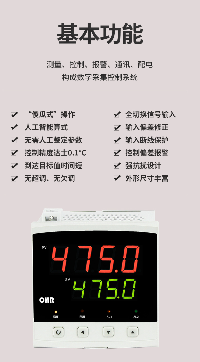 虹潤公司是專業(yè)生產溫控器的國家專精特新“小巨人”企業(yè)。生產的傻瓜式智能溫控器,具有傻瓜式操作,真正人工智能算式,無需人工整定參數,控制精度可達±0.1°C,高抗干擾等特點。產品獲得模糊PID控制儀及控制方法、人工智能調節(jié)器、智能化控制器、移相觸發(fā)控制器、閥門自動手動無擾動操作控制方法及裝置等5項國家發(fā)明專利,主持起草工業(yè)過程控制系統(tǒng)用模擬輸入兩位或多位輸出儀表、物聯(lián)網智能溫度儀表通用技術條件、工業(yè)過程測量和控制系統(tǒng)用智能調節(jié)器等3項國家標準,以及通信系統(tǒng)多通道數據采集控制終端規(guī)范軍用標準,參與國際5G標準制定,取得傻瓜式模糊PID調節(jié)儀等3項相關軟件著作權。產品廣泛應用于電力、石化,冶金、制藥、食品等幾乎所有工業(yè)現(xiàn)場,實現(xiàn)精準控溫,保障生產安全與質量。