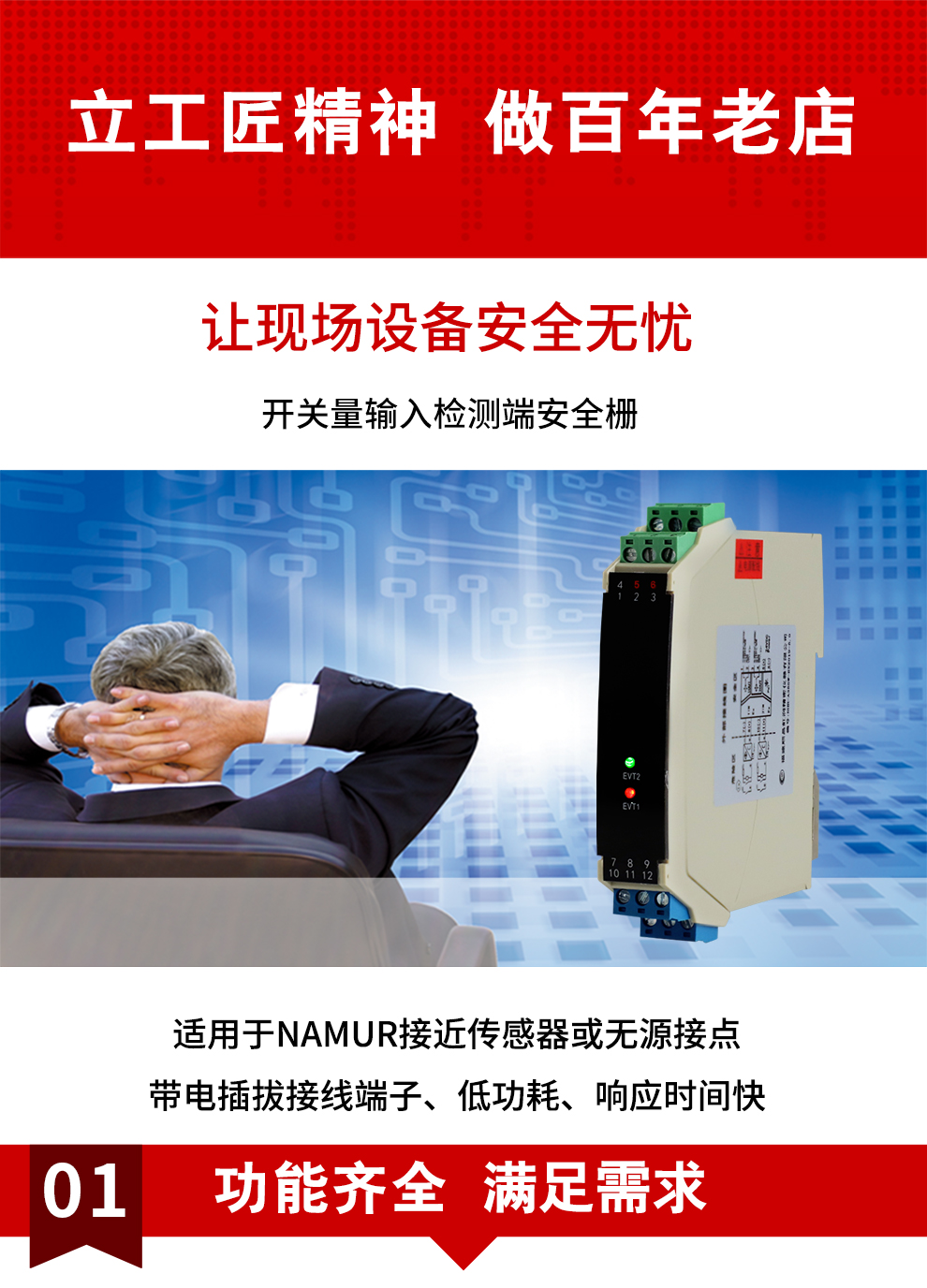 虹潤公司是專業(yè)生產(chǎn)隔離器的國家專精特新“小巨人”企業(yè)。生產(chǎn)的隔離式安全柵涵蓋信號開關(guān)量輸入、電壓輸入、電流輸入、熱電阻輸入、熱電偶輸入、頻率輸入等多種產(chǎn)品類型。產(chǎn)品獲得具備減震抗干擾能力的溫度變送器、信號隔離器、一種二端子模塊、無源信號隔離器等4項國家發(fā)明專利,主持起草物聯(lián)網(wǎng)智能溫度儀表、現(xiàn)場設(shè)備工具(FDT)接口規(guī)范、工業(yè)過程測量和控制系統(tǒng)用溫度變送器等3項國家標(biāo)準(zhǔn),以及通信系統(tǒng)多通道數(shù)據(jù)采集控制終端規(guī)范軍用標(biāo)準(zhǔn)。參與國際5G標(biāo)準(zhǔn)制定,取得智能隔離式安全柵等4項相關(guān)軟件著作權(quán)。產(chǎn)品廣泛應(yīng)用于石油、電力、化工,冶金、智能制造、污水處理等諸多行業(yè)。