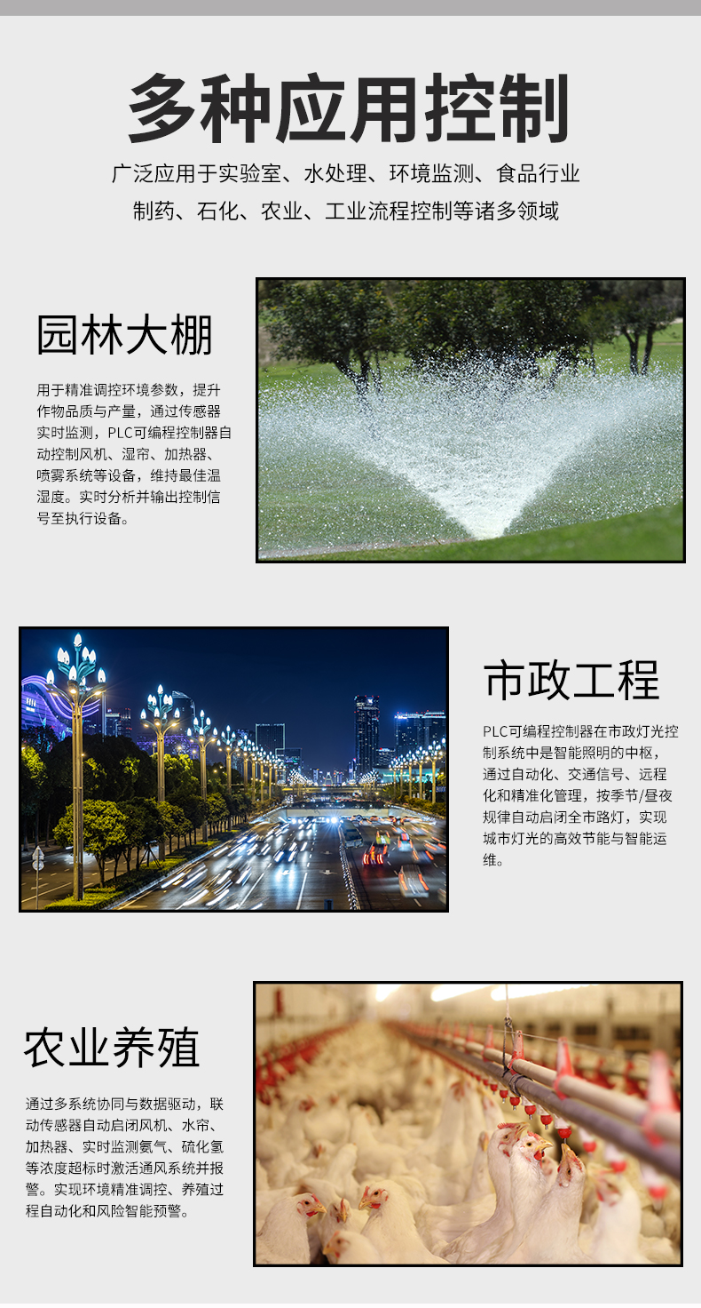 虹潤公司是專業(yè)生產(chǎn)PLC控制器的國家專精特新“小巨人”企業(yè)。生產(chǎn)的簡易PLC控制器,具有全隔離設(shè)計,中文編程,專業(yè)邏輯控制與時間,梯形圖編程方式,遠(yuǎn)程RS485通訊監(jiān)測等特點(diǎn)。產(chǎn)品獲得智能化控制器、多通道可編程繼電器等2項(xiàng)國家發(fā)明專利;主持起草流程工業(yè)中電氣/儀表和控制系統(tǒng)的試車國家標(biāo)準(zhǔn),通信系統(tǒng)多通道數(shù)據(jù)采集控制終端規(guī)范軍用標(biāo)準(zhǔn),以及現(xiàn)場設(shè)備集成等5項(xiàng)智能制造國家標(biāo)準(zhǔn),參與國際5G標(biāo)準(zhǔn)制定,取得可編程繼電器等2項(xiàng)相關(guān)軟件著作權(quán)。產(chǎn)品廣泛應(yīng)用于工業(yè)自動化設(shè)備、電氣自動化系統(tǒng)、農(nóng)業(yè)灌溉、包裝機(jī)械、印刷機(jī)械、樓宇自控等諸多領(lǐng)域。