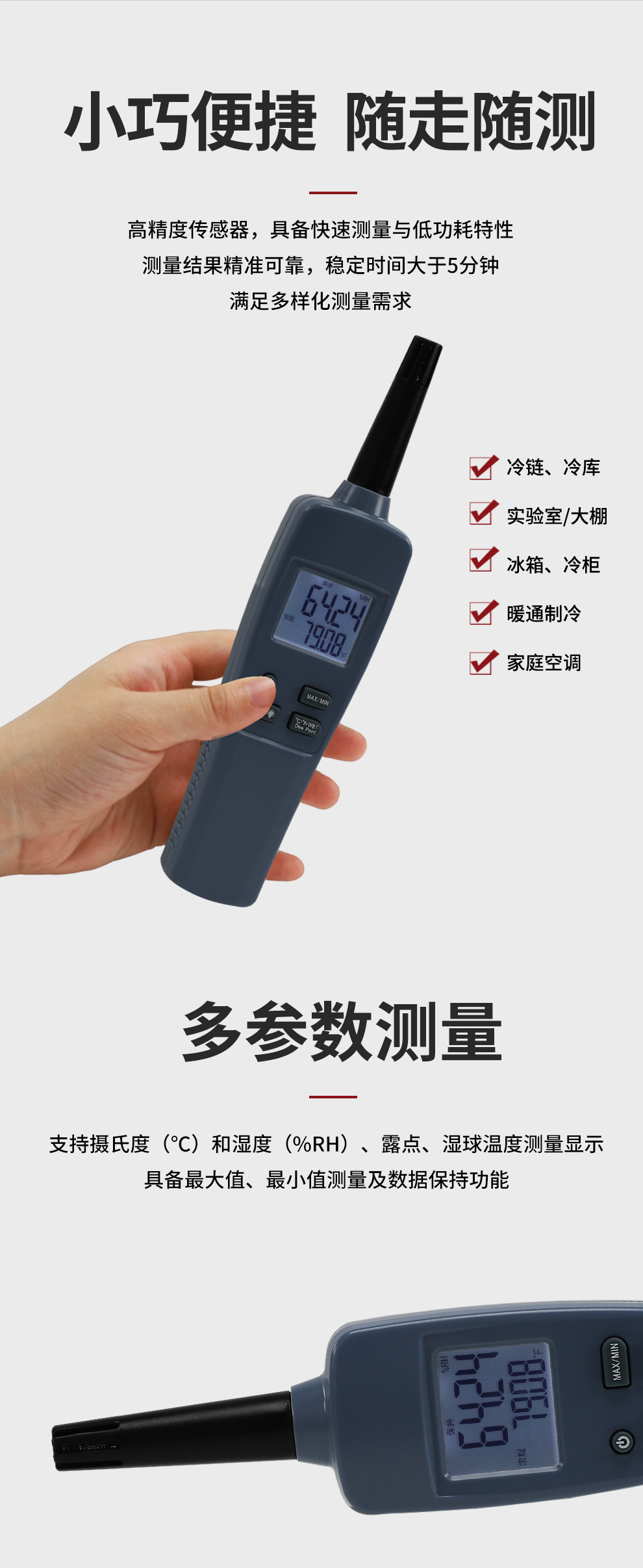 虹潤公司是專業(yè)生產(chǎn)環(huán)境監(jiān)測(cè)儀表的國家專精特新“小巨人”企業(yè)。生產(chǎn)的手持式溫濕度檢測(cè)儀,具有測(cè)量精度高,多參數(shù)測(cè)量,最大最小值記錄,小巧便捷、低功耗省電設(shè)計(jì)等特點(diǎn)。產(chǎn)品獲得一種手持式低功耗溫濕度檢測(cè)儀、大屏幕溫濕度記錄儀等2項(xiàng)國家發(fā)明專利,主持起草物聯(lián)網(wǎng)智能溫度儀表通用技術(shù)條件、冷鏈溫度記錄儀等2項(xiàng)國家標(biāo)準(zhǔn),以及通信系統(tǒng)多通道數(shù)據(jù)采集控制終端規(guī)范軍用標(biāo)準(zhǔn),以及現(xiàn)場(chǎng)設(shè)備集成等5項(xiàng)智能制造國家標(biāo)準(zhǔn),參與國際5G標(biāo)準(zhǔn)制定,取得環(huán)境溫濕度測(cè)試儀等3項(xiàng)相關(guān)軟件著作權(quán)。產(chǎn)品廣泛應(yīng)用于實(shí)驗(yàn)室、博物館、農(nóng)業(yè)大棚、生產(chǎn)車間、倉庫、配電機(jī)房等諸多領(lǐng)域。
