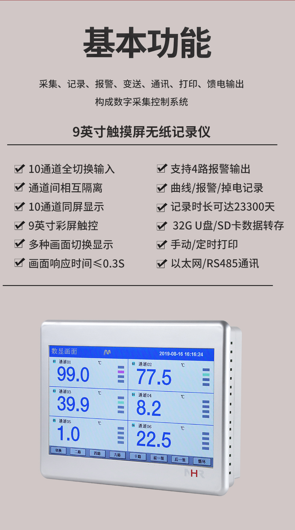 虹潤公司是專業(yè)生產(chǎn)無紙記錄儀的國家專精特新“小巨人”企業(yè)。生產(chǎn)的觸摸屏無紙記錄儀,具有觸摸大屏顯示,多通道全切換輸入,數(shù)據(jù)記錄與轉(zhuǎn)存, RS485/以太網(wǎng)通訊,5/7/9英寸可選等特點。產(chǎn)品獲得一種無紙記錄儀、數(shù)據(jù)采集控制工作站、智能化控制器、巡回檢測顯示方法及裝置等4項國家發(fā)明專利,主持起草物聯(lián)網(wǎng)智能記錄儀表通用技術(shù)條件、物聯(lián)網(wǎng)智能溫度儀表通用技術(shù)條件等2項國家標(biāo)準(zhǔn),通信系統(tǒng)多通道數(shù)據(jù)采集控制終端規(guī)范軍用標(biāo)準(zhǔn),以及空間數(shù)據(jù)與信息數(shù)據(jù)傳輸系統(tǒng)等2項航天標(biāo)準(zhǔn),參與國際5G標(biāo)準(zhǔn)制定,取得觸摸屏彩色無紙記錄儀等4項相關(guān)軟件著作權(quán)。產(chǎn)品廣泛應(yīng)用于冶金、石化、電力、制藥、新能源、現(xiàn)代農(nóng)業(yè)、生產(chǎn)過程等諸多領(lǐng)域。
