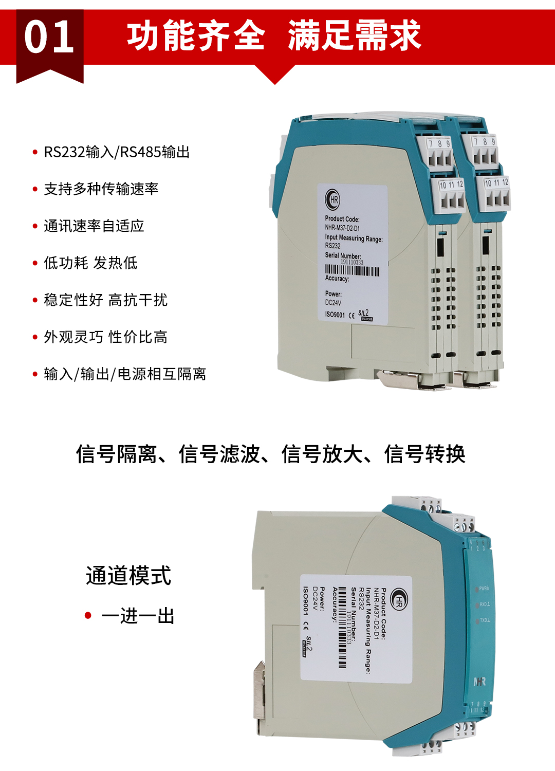 虹潤公司是專業(yè)生產隔離器的國家專精特新“小巨人”企業(yè)。生產的智能信號隔離器涵蓋通訊轉換器、電流電壓變送器、溫度變送器、配電器、開關量轉換器及頻率轉換器等多種產品類型。產品獲得信號隔離器、一種二端子模塊、無源信號隔離器等3項國家發(fā)明專利,主持起草現(xiàn)場設備工具(FDT)接口規(guī)范、工業(yè)過程測量和控制系統(tǒng)用隔離式安全柵、工業(yè)過程測量和控制系統(tǒng)用配電器等3項國家標準,以及通信系統(tǒng)多通道數(shù)據(jù)采集控制終端規(guī)范軍用標準,參與國際5G標準制定,取得導軌式智能隔離器、頻率轉換器等3項相關軟件著作權。產品廣泛電力、冶金、工業(yè)電爐、變電站、高壓電機房等需要電隔離的工業(yè)自動化控制系統(tǒng)。