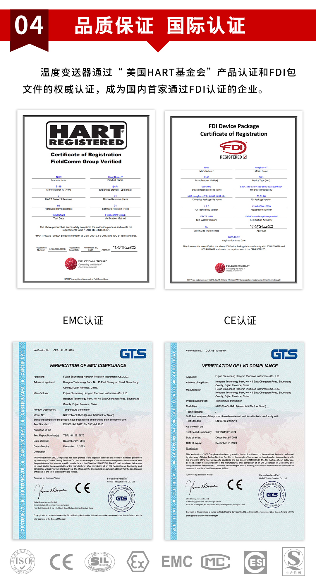 虹潤公司是專業(yè)生產溫度變送器的國家專精特新“小巨人”企業(yè)。生產的LCD 隔離智能溫度變送器,具有熱電阻熱偶信號全切換輸入,精度高,穩(wěn)定性好,輸入輸出隔離,帶HART或RS485通訊等特點。該產品不僅通過HART基金會認證、德國萊茵 CE 認證與 SIL 功能安全認證,還獲得具備減震抗干擾能力的溫度變送器、信號隔離器、一種二端子模塊、無源信號隔離器等4項國家發(fā)明專利,主持起草物聯(lián)網智能溫度儀表、現(xiàn)場設備工具(FDT)接口規(guī)范、工業(yè)過程測量和控制系統(tǒng)用溫度變送器等3項國家標準,以及通信系統(tǒng)多通道數(shù)據(jù)采集控制終端規(guī)范軍用標準,參與國際5G標準制定,取得高精度溫度變送器等5項相關軟件著作權。產品廣泛應用于石油、化工、電力、冶金、制藥、食品、水處理等各種工業(yè)領域。