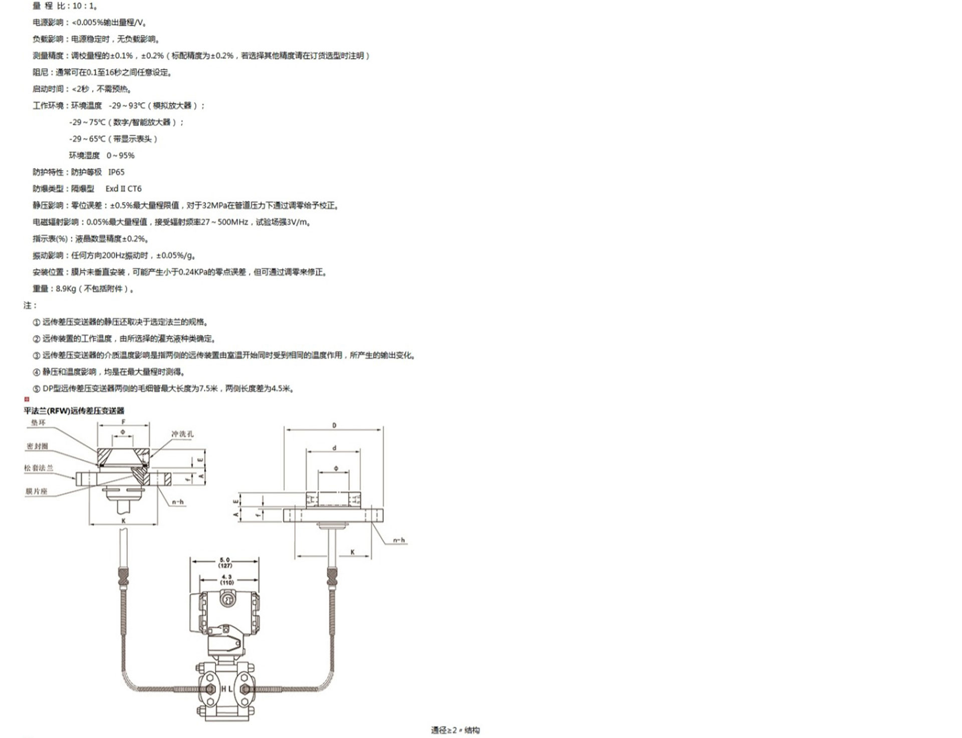 HR-3051DP遠(yuǎn)傳差壓變送器是一種通過安裝在管道或容器上的遠(yuǎn)傳裝置來感受被測壓力,該壓力經(jīng)毛細(xì)管內(nèi)的灌充硅油(或其它的液體)傳遞至變送器的主體,然后由變送器主體內(nèi)的δ室和放大線路板,將壓力或差壓轉(zhuǎn)換4~20mA.DC信號輸出。