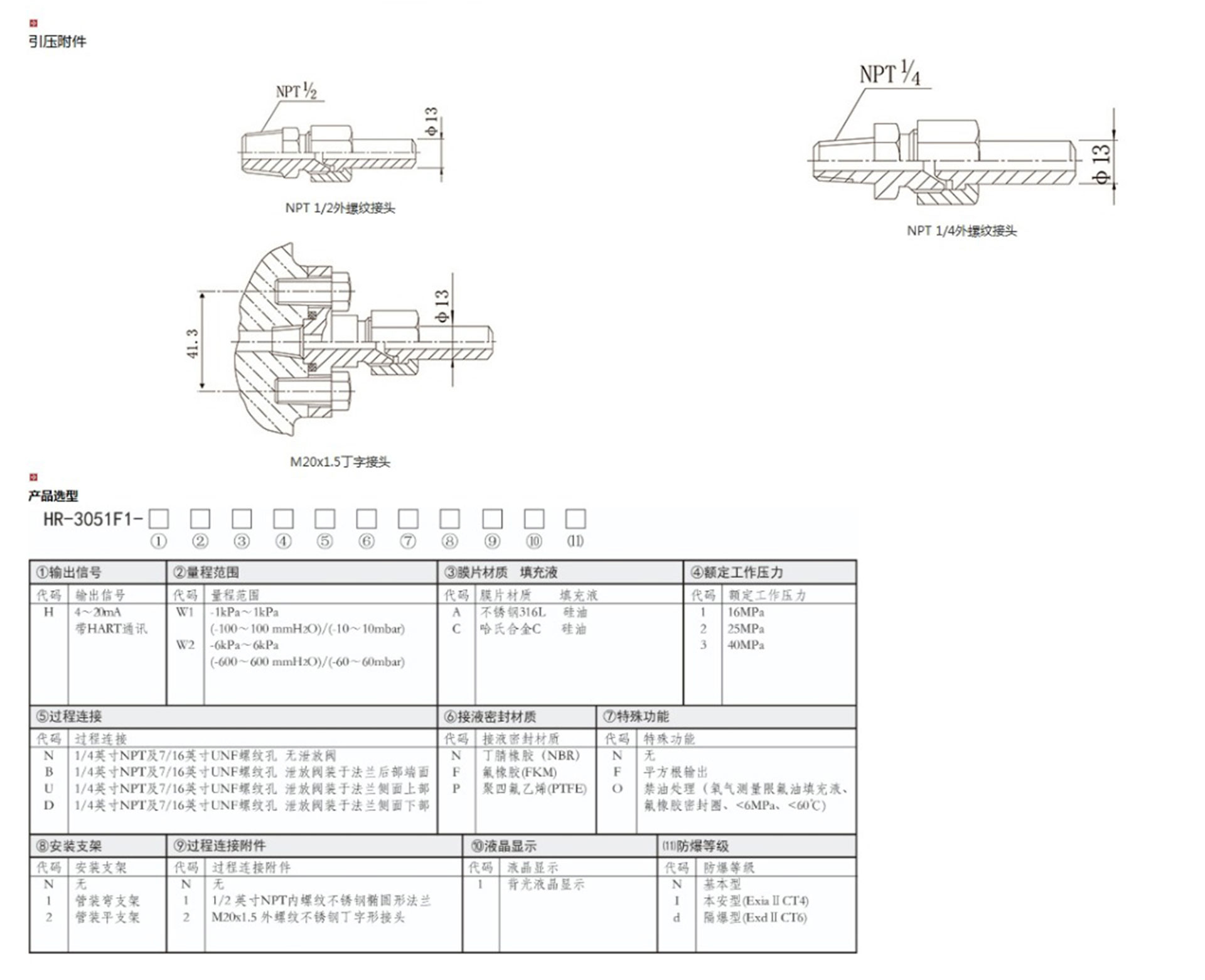 HR-3051F1智能單晶硅微差壓變送器能準(zhǔn)確的測(cè)量差壓,并把它轉(zhuǎn)換成4~20mADC的輸出信號(hào)。該變送器可通過三按鍵本地操作,或通用手操器、組態(tài)軟件、以及手機(jī)APP遠(yuǎn)程操作,在不影響4~20mA DC的輸出信號(hào)的同時(shí),進(jìn)行顯示與組態(tài)。